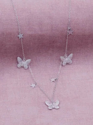 A sterling silver sleek charm chain adorned with delicate butterfly and star charms would undoubtedly make a stunning and elegant piece of jewelry. The combination of sterling silver, butterflies, and stars creates a sense of grace, freedom, and wonder.
