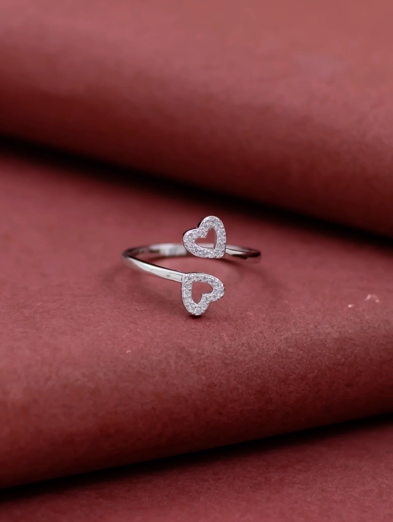 Love is in the details with this sterling silver double heart adjustable ring, featuring two interconnected hearts that symbolize eternal love and devotion.