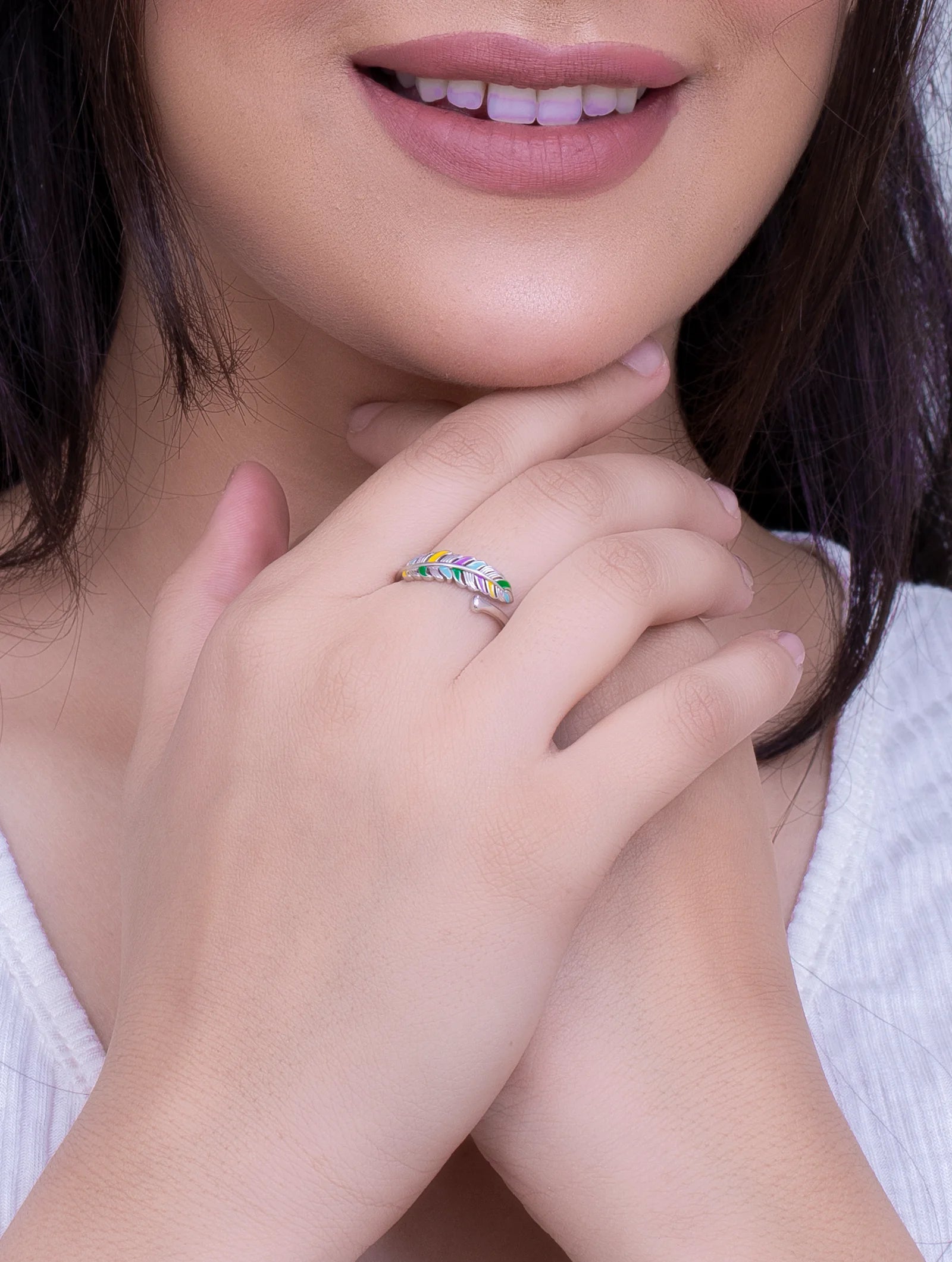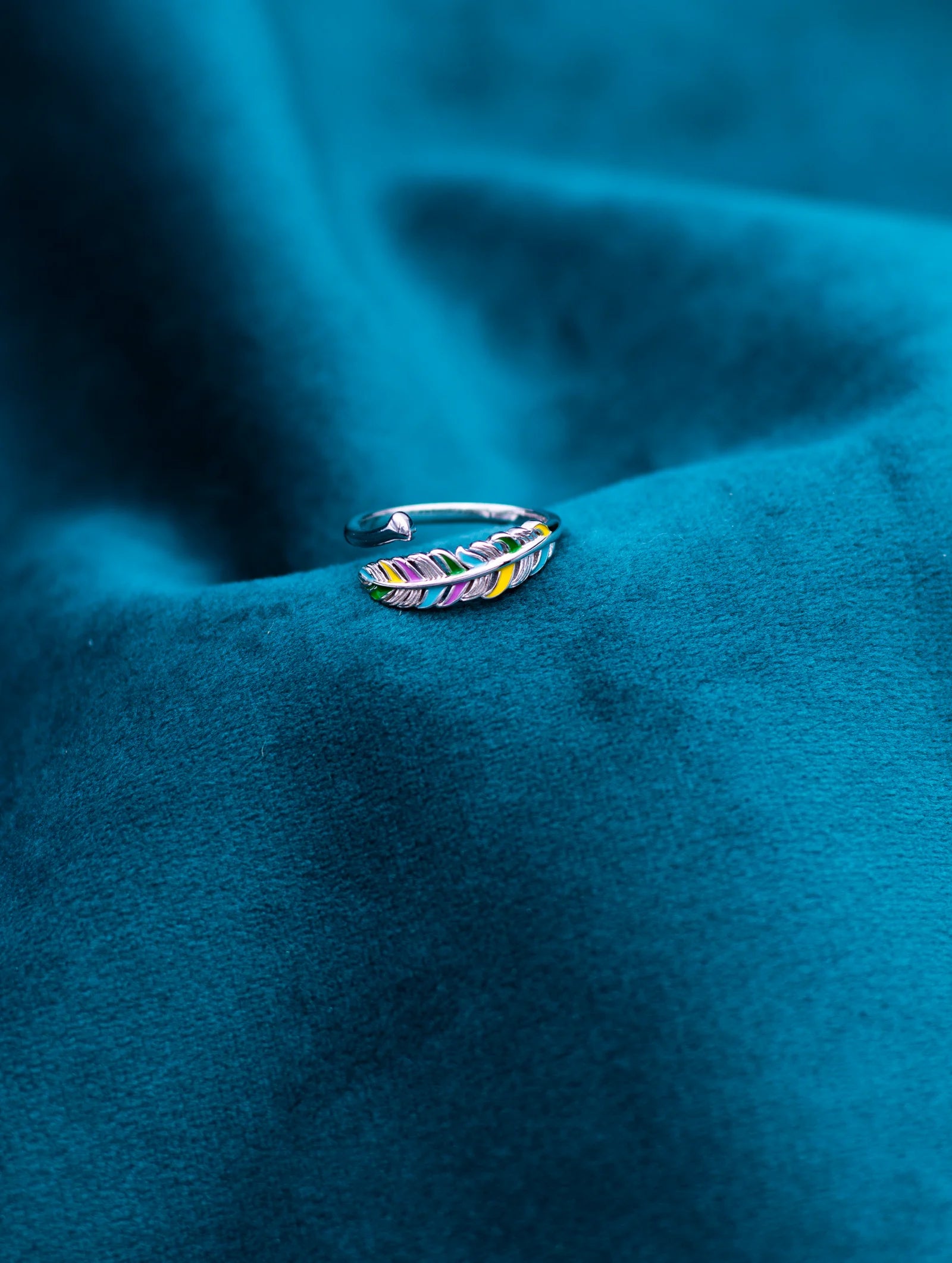 Introducing our lightweight ring, designed with meticulous attention to detail. Featuring an intricate feather design at one end and a delicate drop at the other, this ring exudes elegance and charm. Its unique design sets it apart, making it a stylish and distinctive accessory for any occasion.
