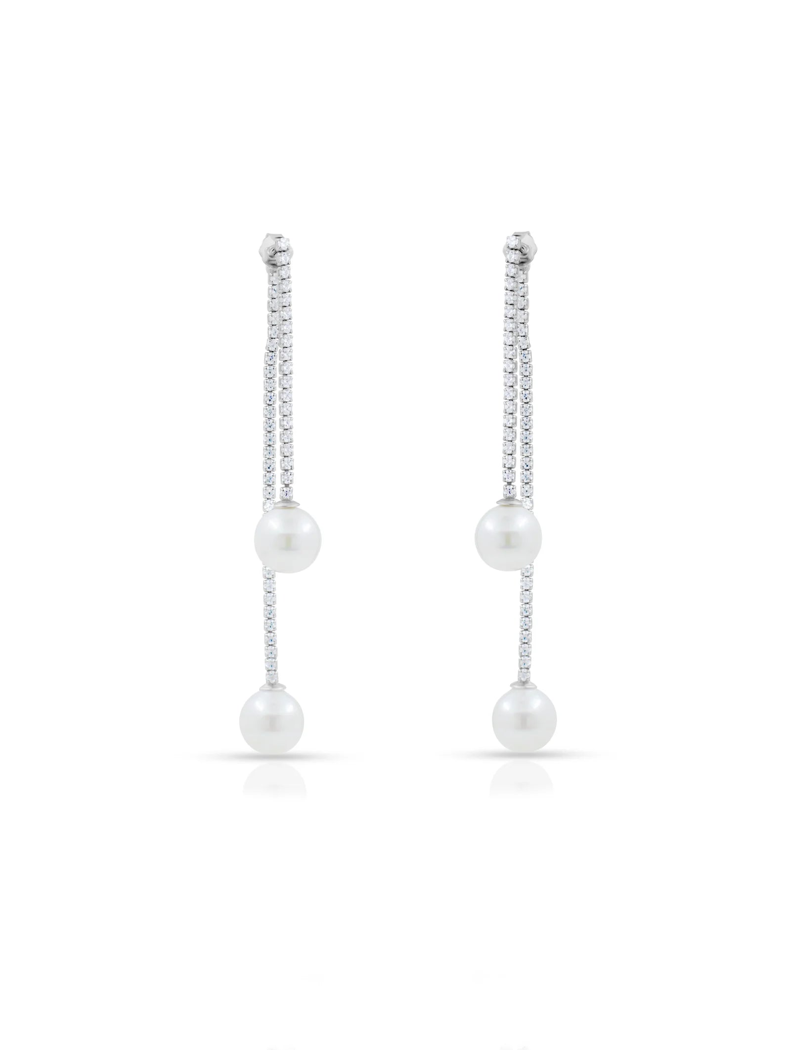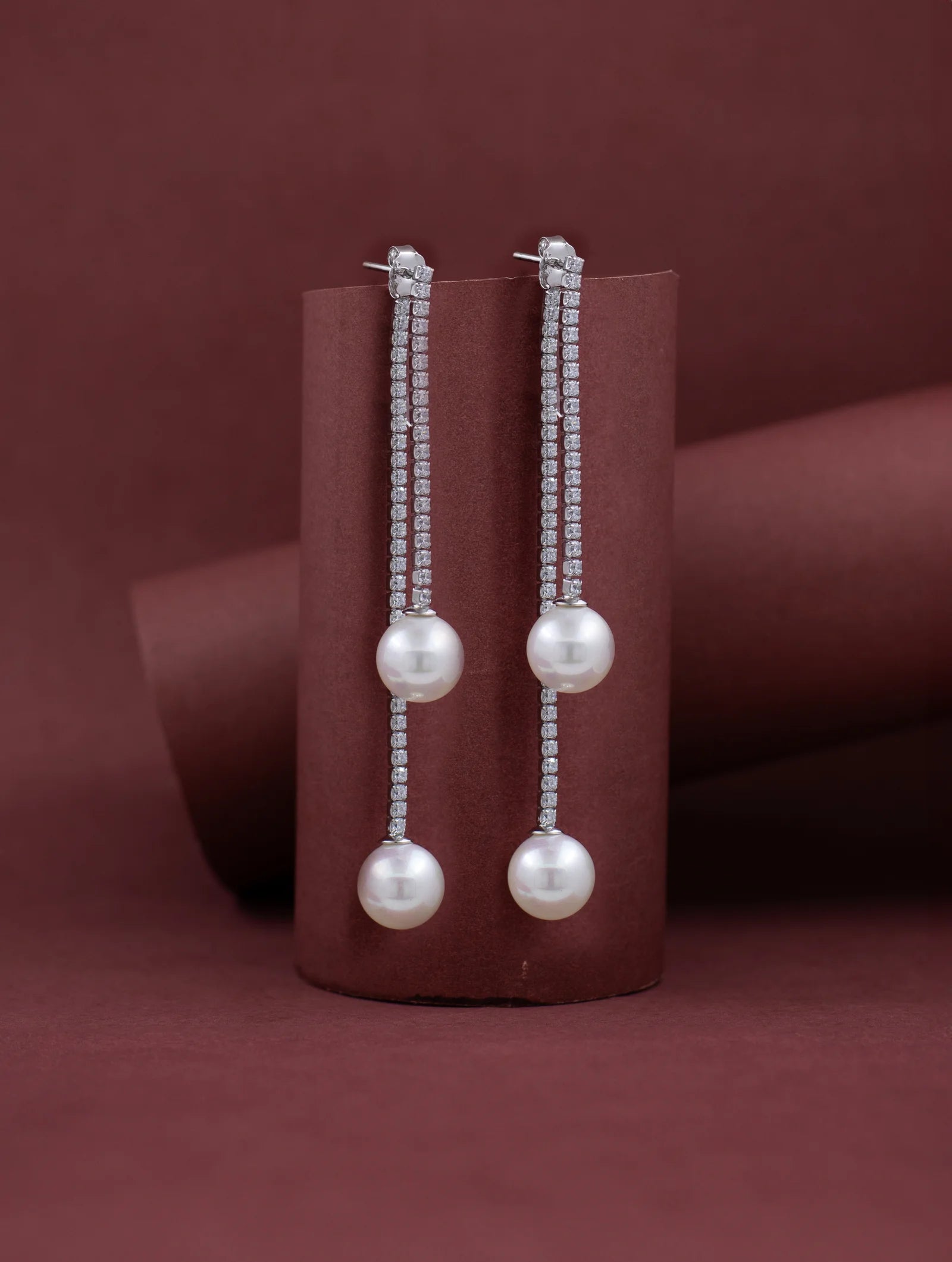 Radiate sophistication with our hanging earrings adorned with a lustrous pearl drop. These exquisite earrings marry classic elegance with contemporary flair, making them ideal for any occasion. Their refined design adds a touch of sophistication to both casual and formal ensembles.